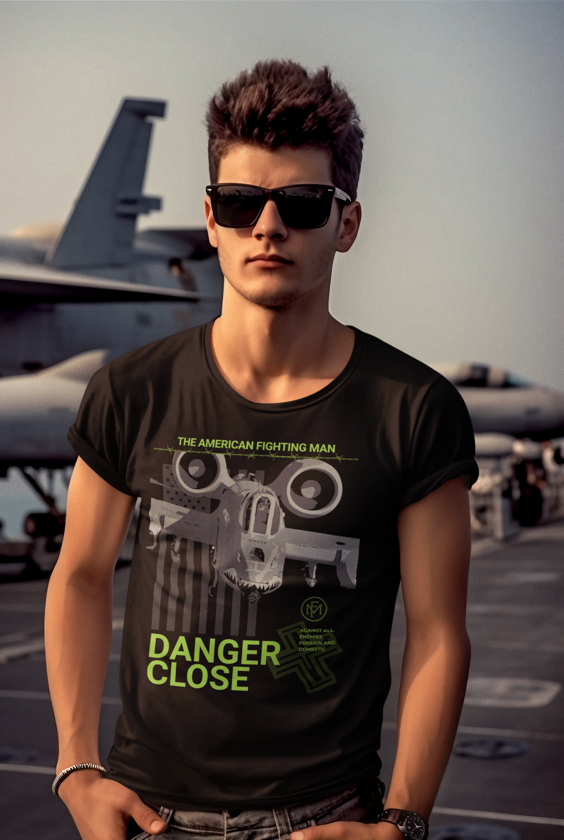 This "Danger Close" T-shirt is a salute to those who know the raw power of close air support, where the legendary A-10 Warthog reigns supreme. Whether you're a warfighter, a veteran, or just someone who respects the BRRRRT of freedom, this tee embodies the adrenaline-pumping moment when you're too close to the kill zone—but exactly where you need to be.